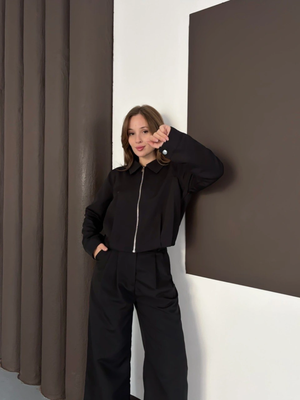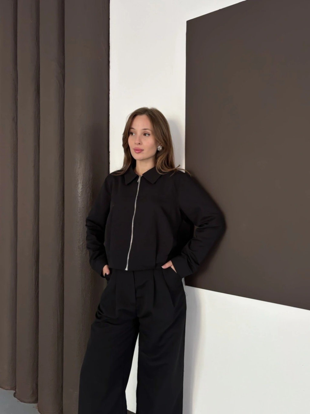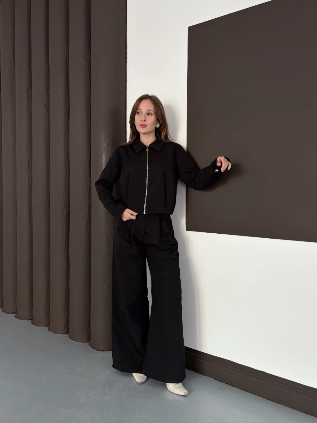 Kollu modal takım siyah