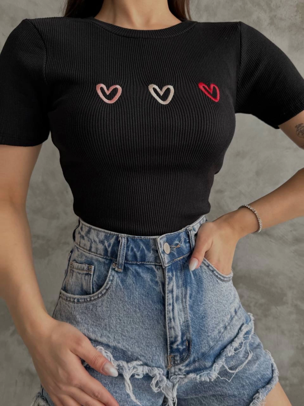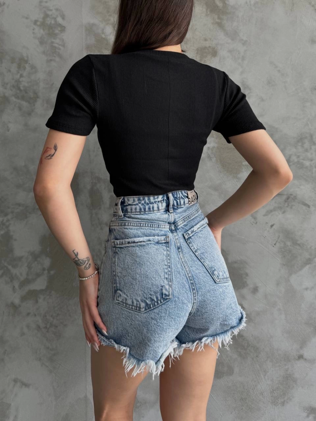 Kadın siyah bisiklet yaka gold düğmeli ottoman bluz s2310