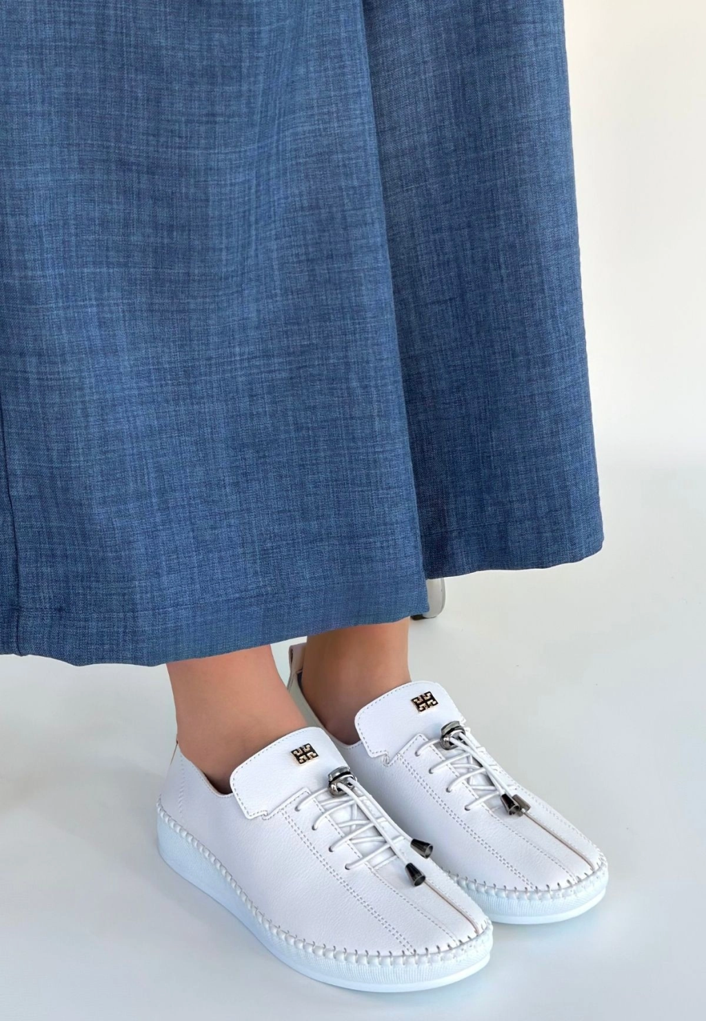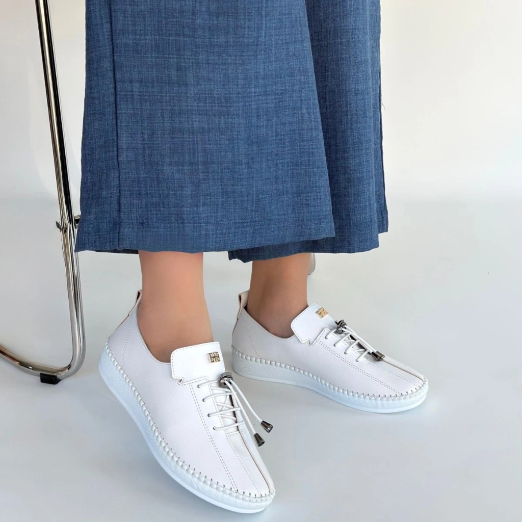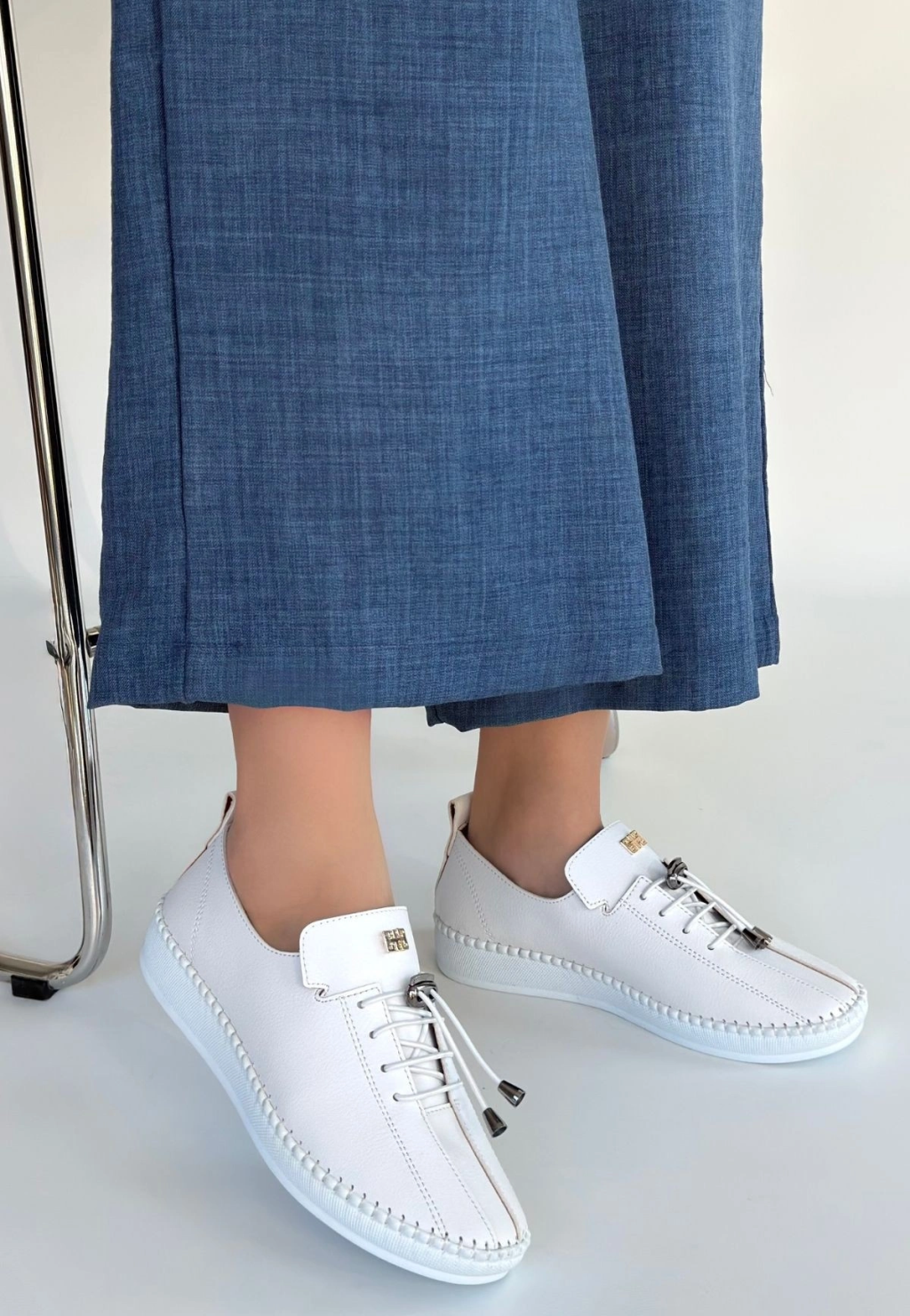 Tawen Beyaz Cilt Bağcıklı Spor Ayakkabı