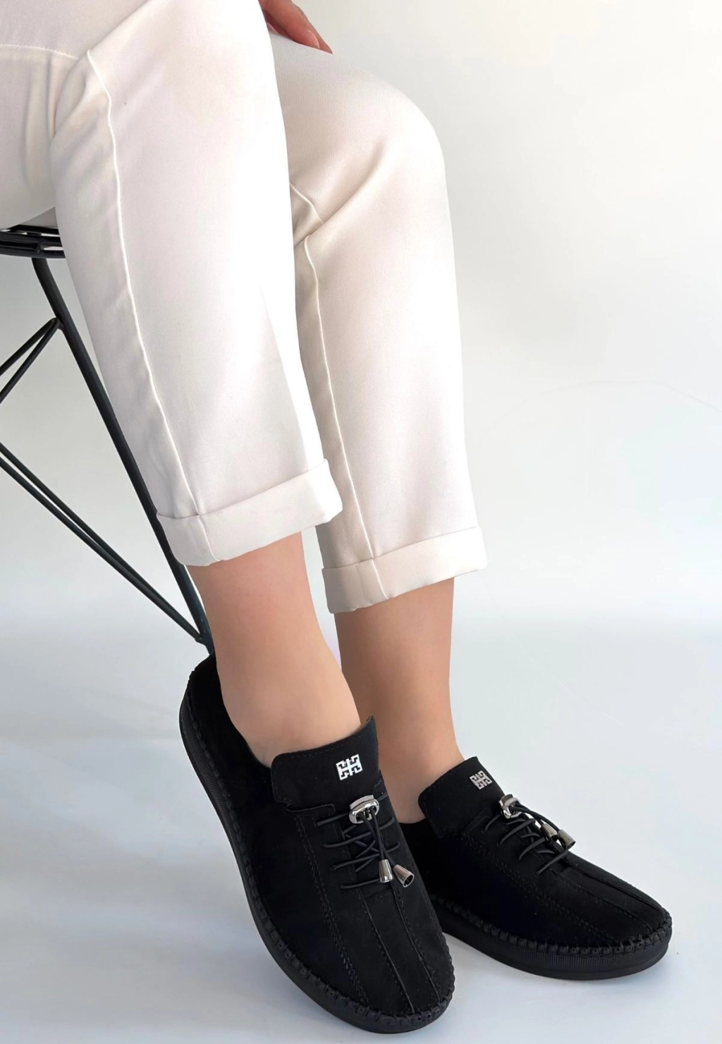 Warte Siyah Süet Bağcıklı Spor Ayakkabı