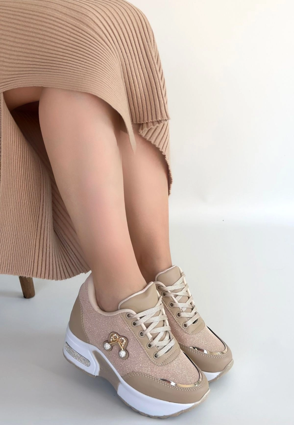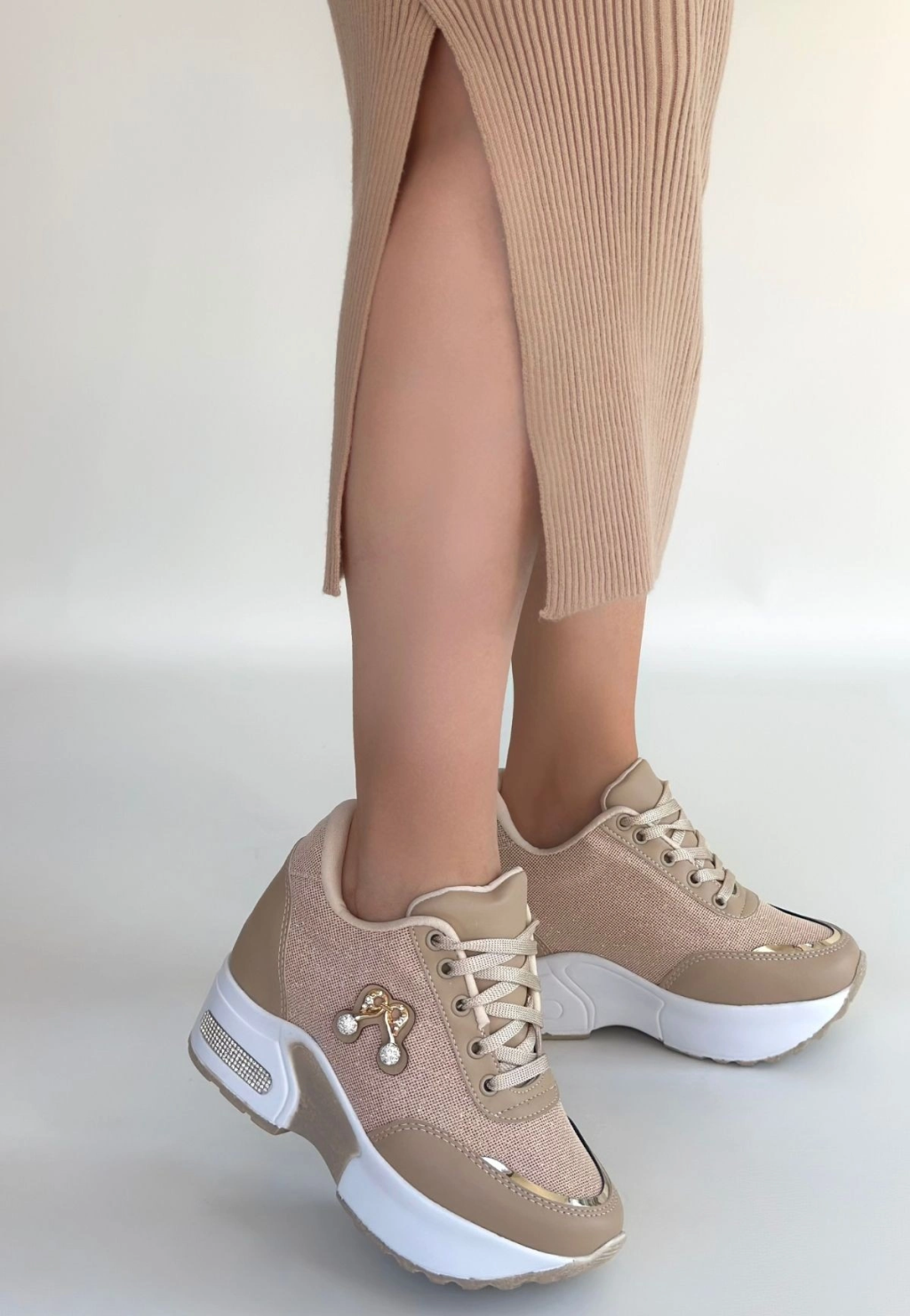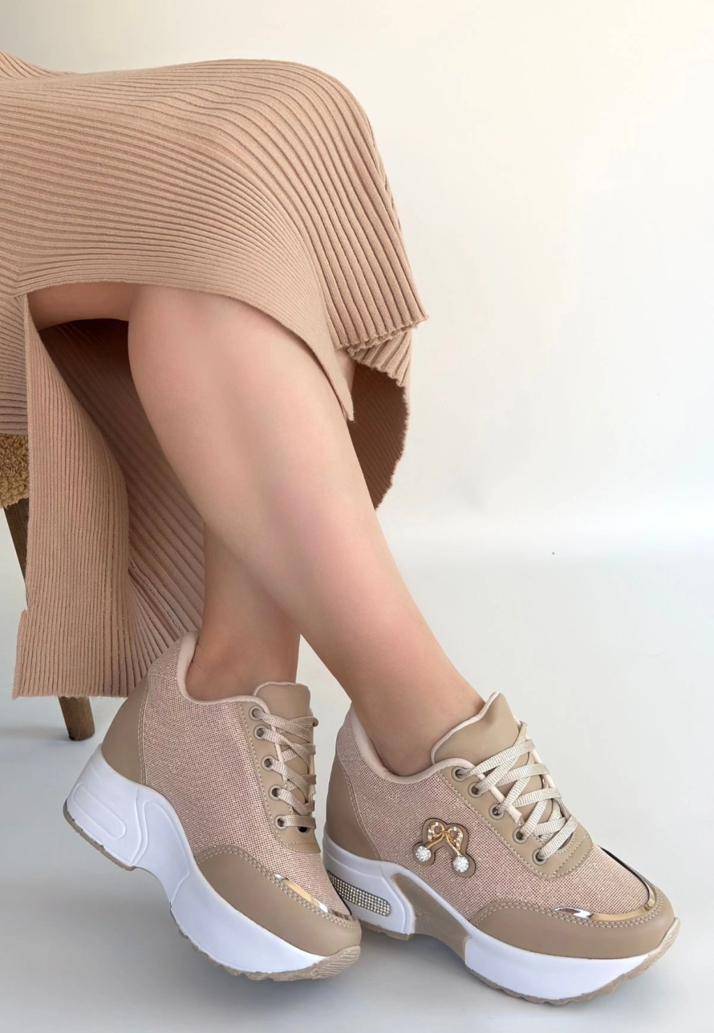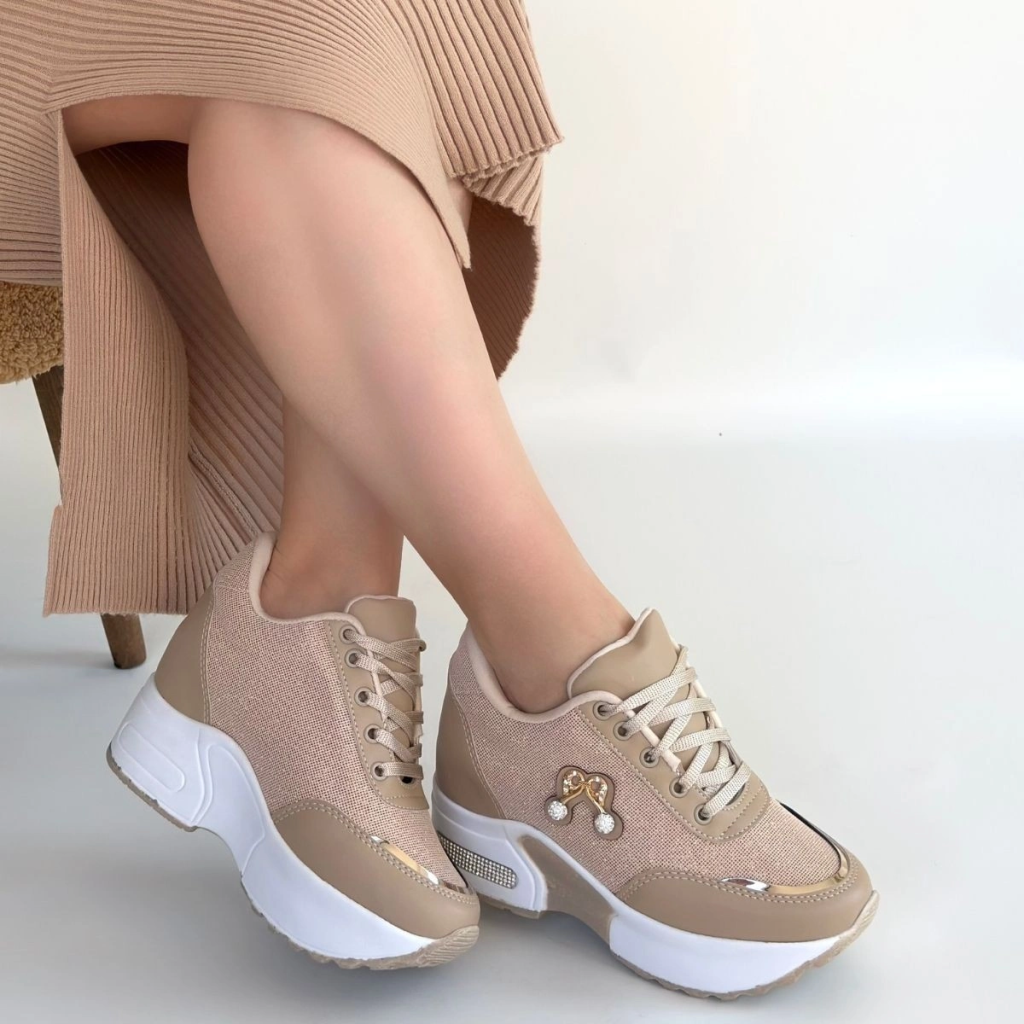 Wody Bej Cilt Simli Bağcıklı Spor Ayakkabı