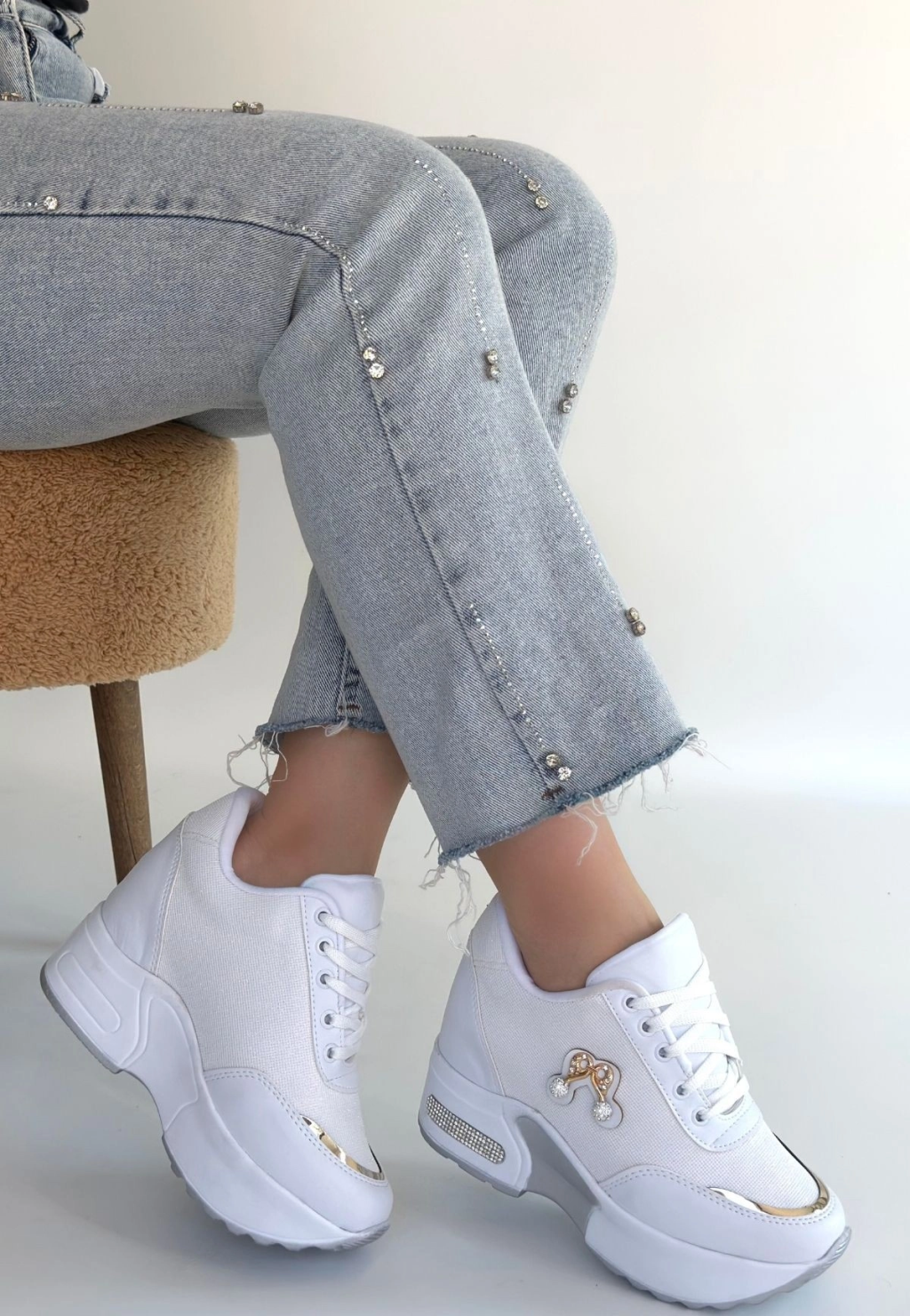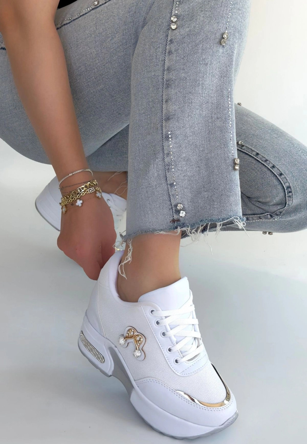 Wody Beyaz Cilt Simli Bağcıklı Spor Ayakkabı