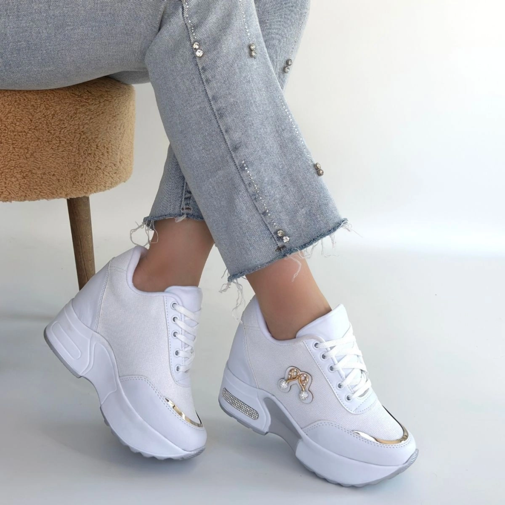 Yejja Beyaz Cilt Bağcıklı Spor Ayakkabı
