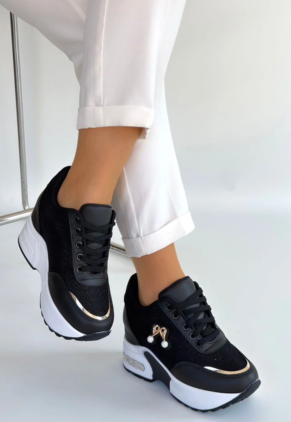 Wody Siyah Cilt Simli Bağcıklı Spor Ayakkabı