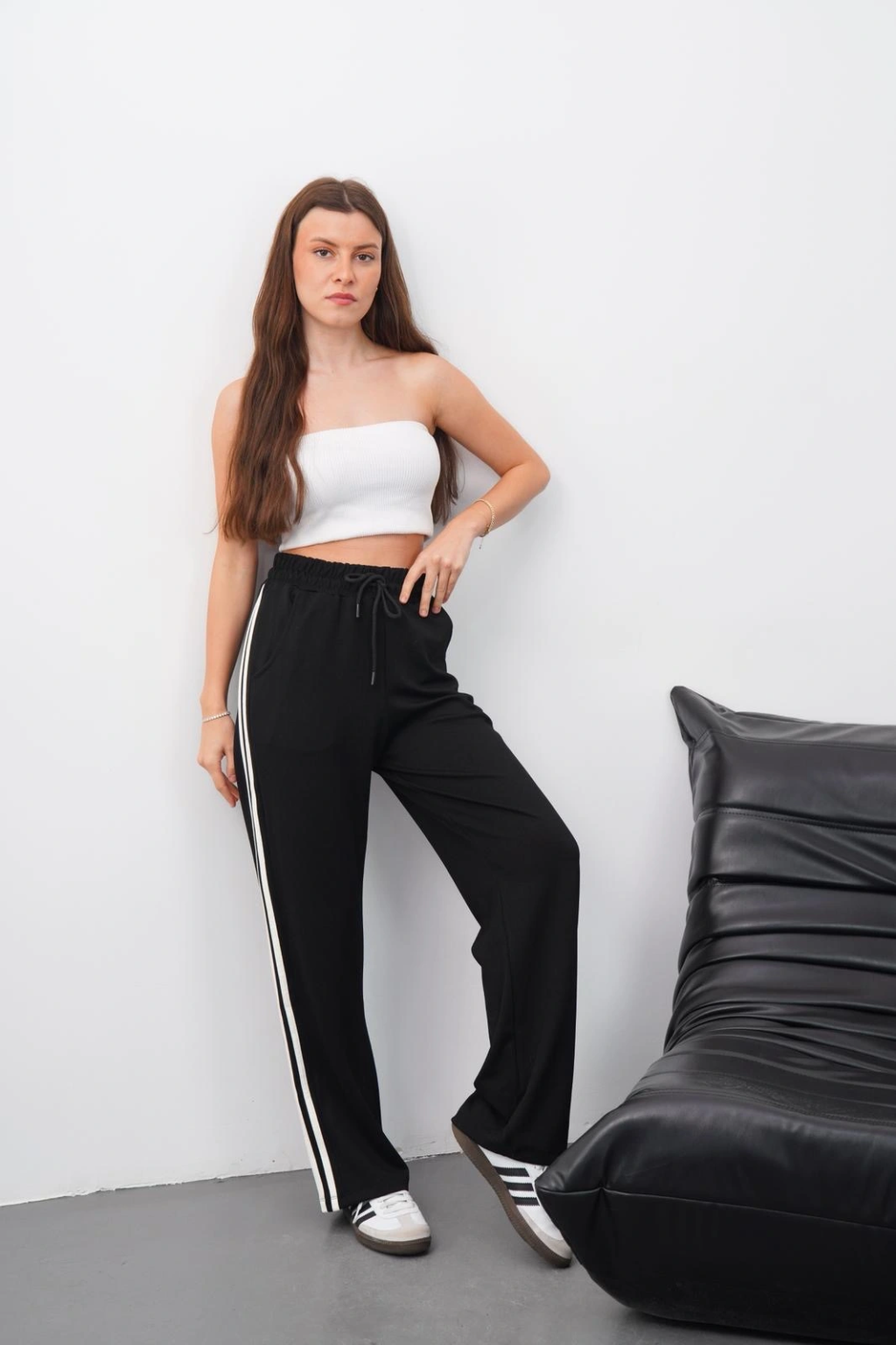 Cırtlı pantolon krep siyah pt