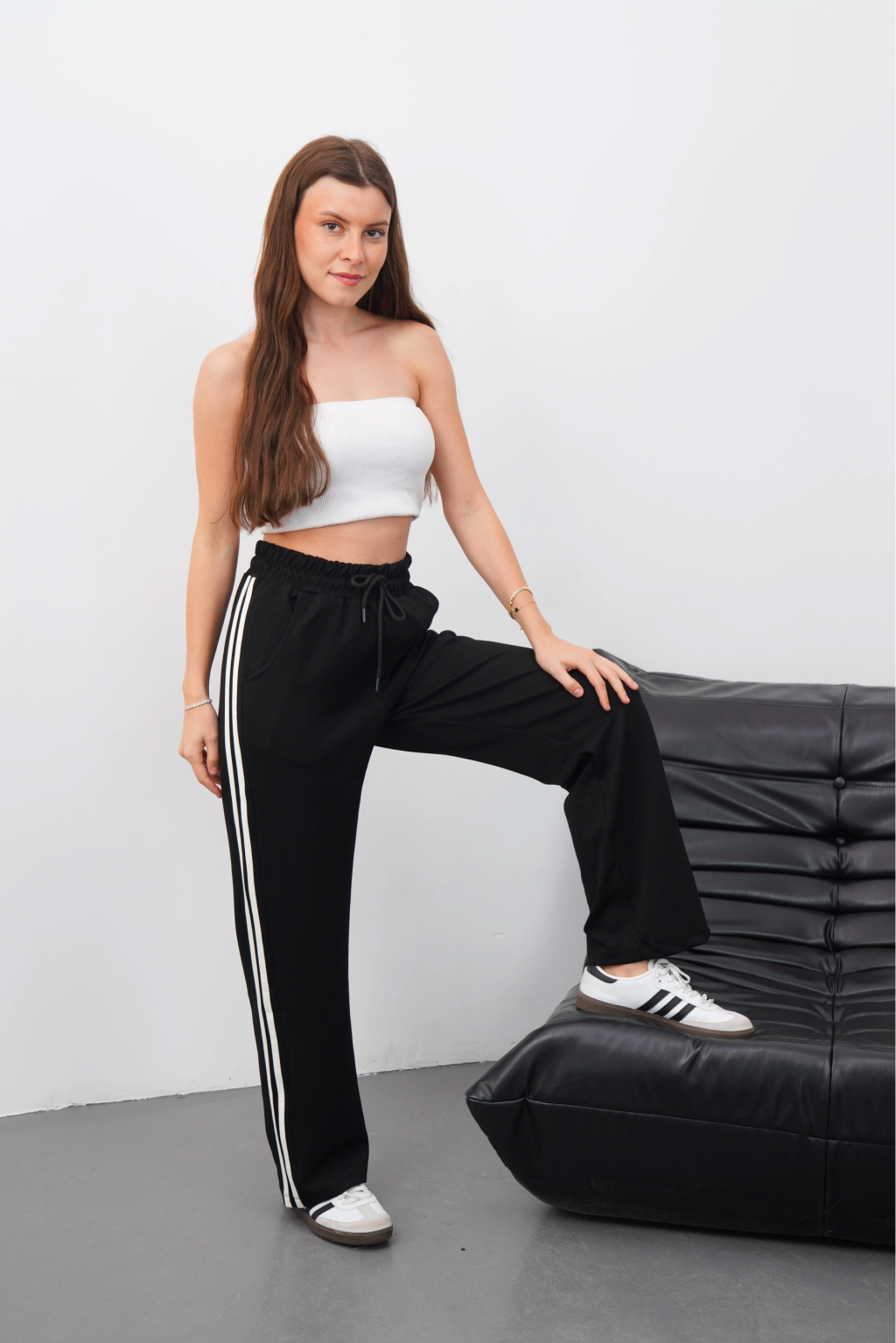 3 iplik şardonlu palazzo pantolon füme md64