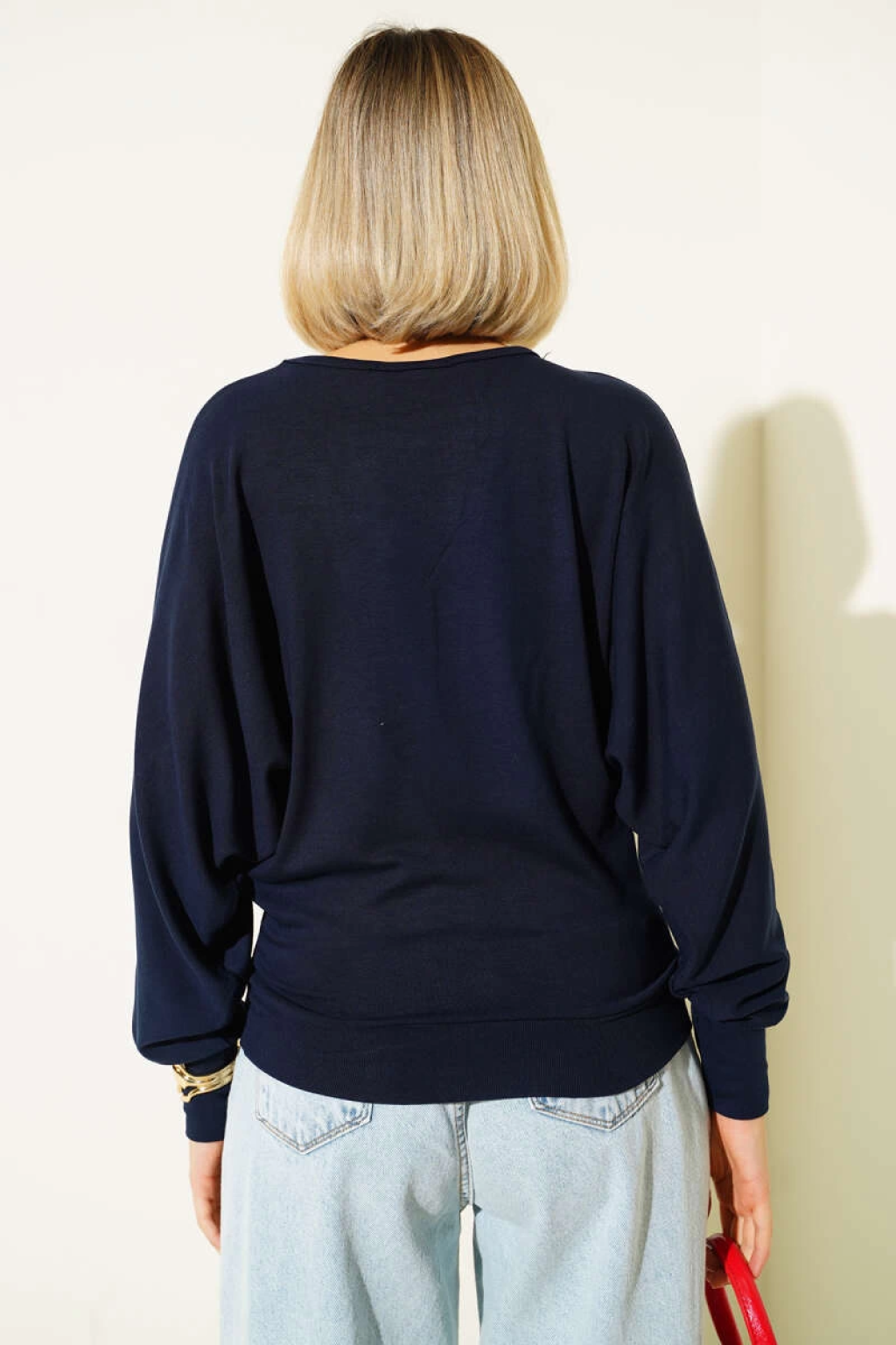 Yarasa Kol Salaş Bluz Lacivert T4273