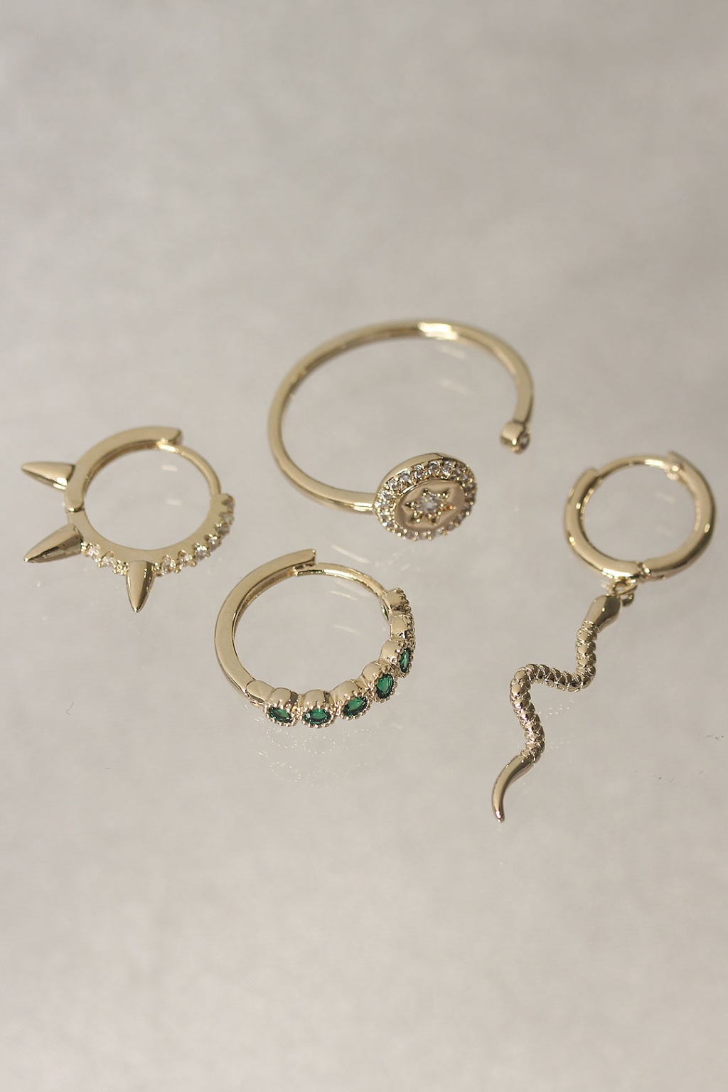 Yeşil Zirkon Taş Detaylı Yılan Model Küpe ve Yüzük Seti