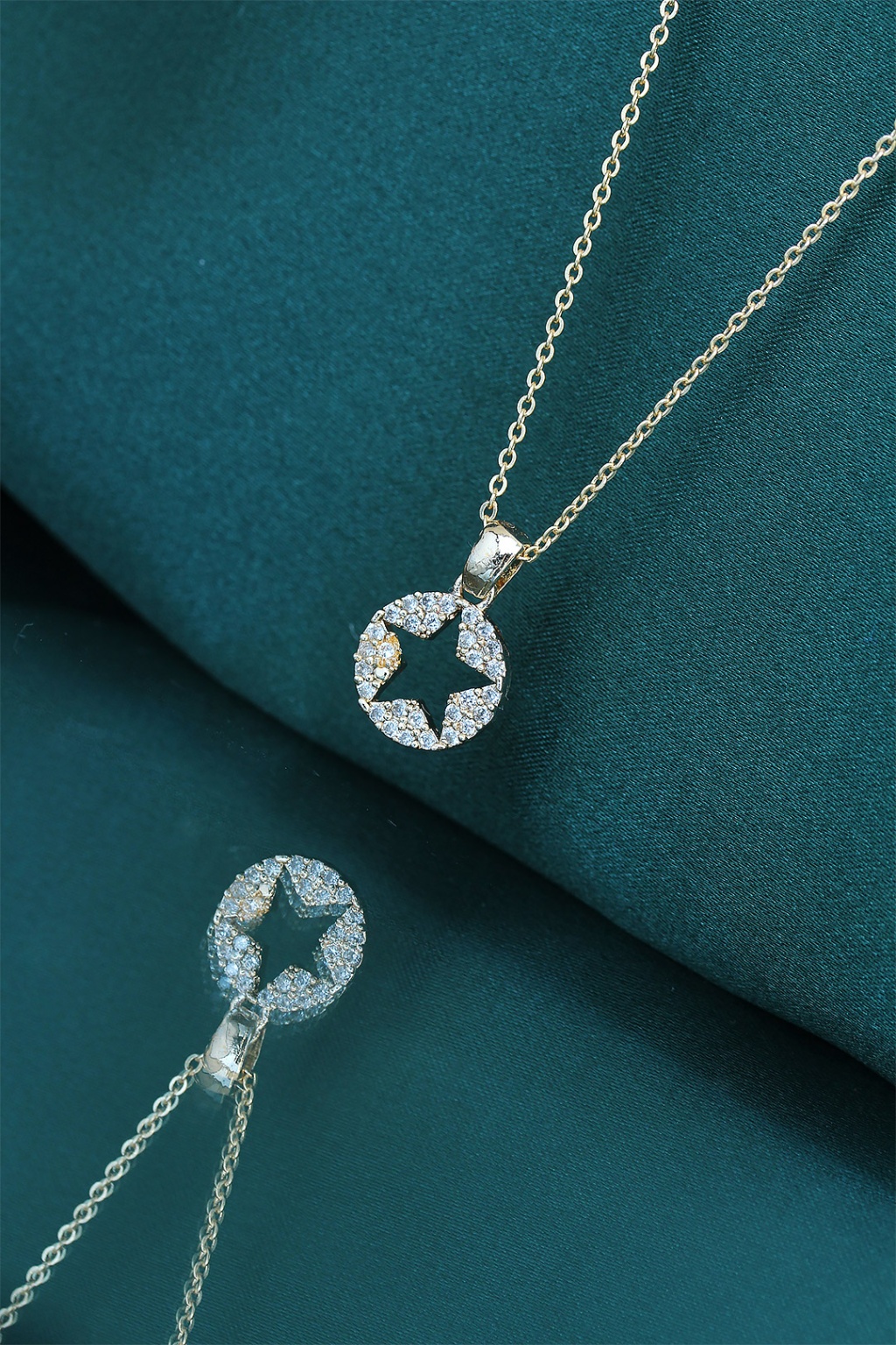 316L Çelik Zirkon Taşlı Yıldız Model Gold Renk Kadın Kolye